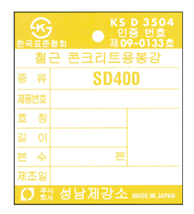 | Deformed steel bars | KS D 3504 | SD400 |